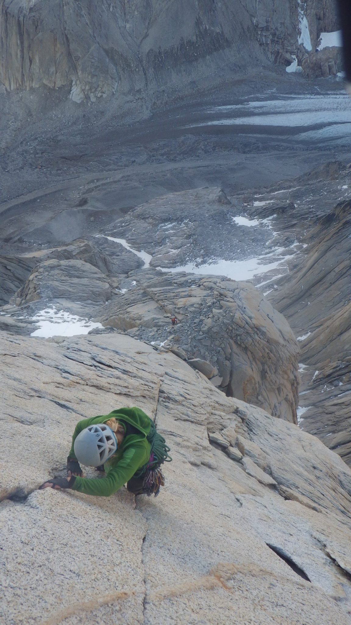 ¡Ambas rutas fueron experiencias increíbles! La Travesía fue mi primera ruta en el macizo del Torre, fue un viaje salvaje por todas las cumbres, una buena introducción a la escalada en el sector y una gran aventura. “Directa” fue una de las escaladas con mayor sensación de aventura que he hecho. Escalamos bajo condiciones no tan perfectas; hielo cayendo, agua corriendo y el viento patagónico. Alcanzamos la cumbre cuando el sol se estaba yendo el segundo día, luego rapeleamos la cara norte en medio de fuertes vientos. Rapeleamos toda la noche y estuvimos de vuelta en el glaciar a las 8:00am. Fue una escalada increíble en una pared clásica, ¡la cara norte del Torre!