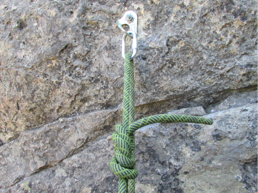Antes eso si, es bueno recordar que siempre que vayamos a un sector de escalada es recomendado llevar uno o dos «Maillones», elemento que es más económico que un mosquetón y que nos permitirá descolgarnos o rapelear de él. Otro elemento que no podemos dejar en la casa, y que es parte del equipo personal, es una anilla de cordín de 5 o 6mm para hacer un nudo autobloqueante junto a su respectivo mosquetón con seguro.