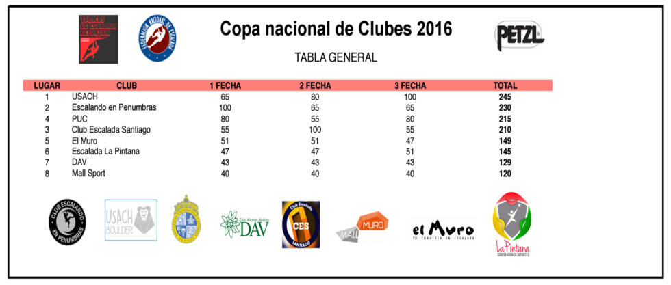 Cuatro eran los equipos que llegaban con aspiraciones de alzar la Copa este sábado. Escalando en Penumbras venía punteando la tabla y no quería desperdiciar la oportunidad. Misma chance que tenía el Club de la Universidad Católica y el Club de Escalada Santiago. Sin embargo la USACH tenía otra cosa que decir. Sobre todo las mujeres que impresionantemente ganaron en todas las categorías. Por otro lado, los hombres también entregaban puntos preciados con el tercer lugar en la categoría de expertos y segundo lugar en avanzados.