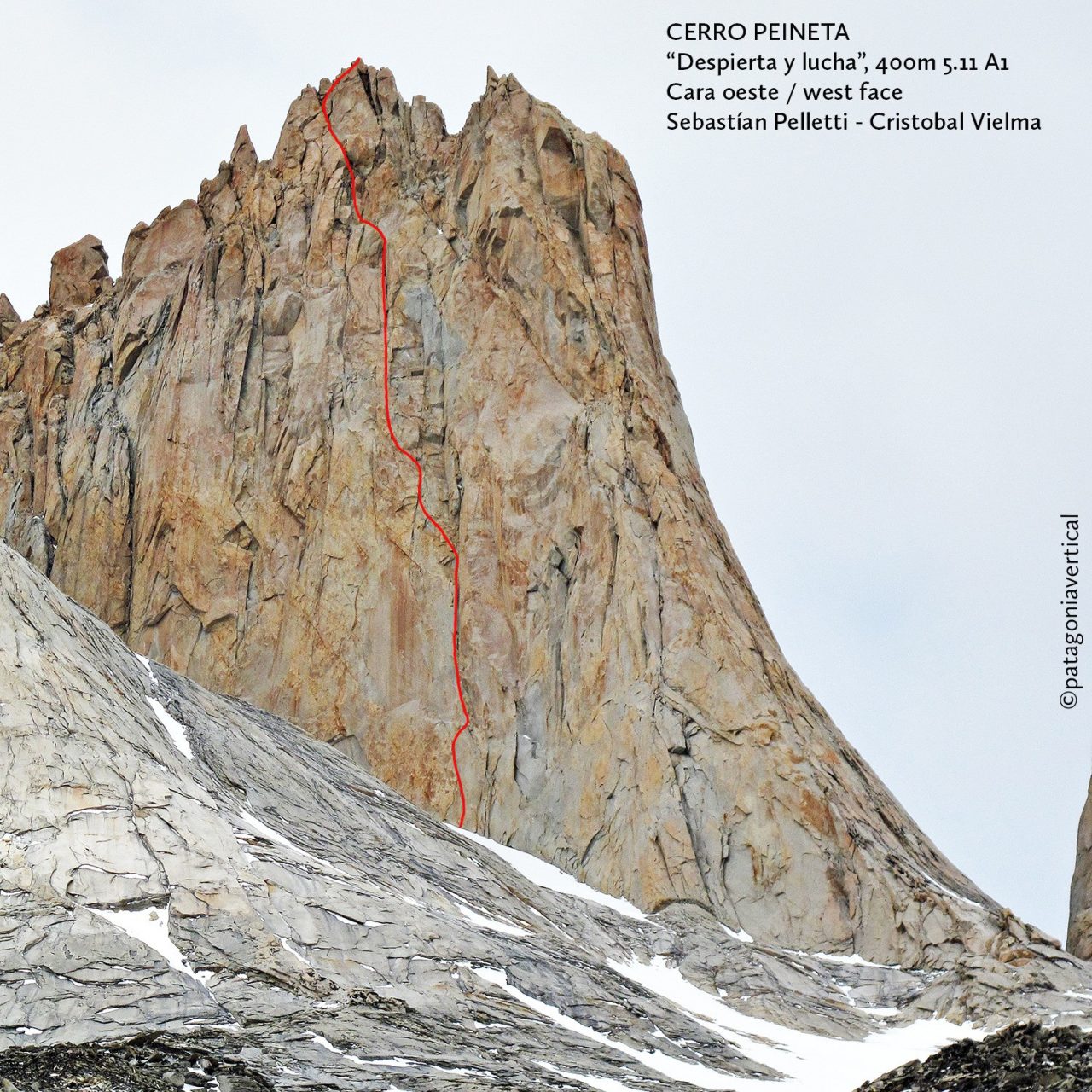 A fines de enero de éste año 2020, el australiano Sebastian Pelleti y el chileno Cristóbal Vielma abrieron una nueva ruta en la cara oeste del Cerro Peineta, en las Torres del Paine. «Despierta y lucha» nombraron la ruta que entre techos, diedros y fisuras los invitó con fuertes vientos patagónicos y bajas temperaturas, a llegar a su cumbre. En el siguiente relato, uno de sus propios protagonistas nos cuenta sobre el día de la hazaña.