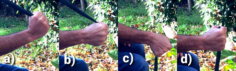 Este ejercicio permite que los músculos del antebrazo integren la muñeca y el codo, optimizando la fuerza de agarre. Se puede hacer hacia una dirección y luego hacia la otra para enfocarse mejor en el movimiento, por ejemplo ir desde el neutro (fig. 5b) hacia la supinación (fig. 5a) o hacia la pronación (fig. 5c). Esto se puede hacer con una banda elástica, un martillo o una mancuerna, realizando repeticiones sin tanta fatiga en un comienzo e ir progresando. Lo importante es que sea un peso o tensión en un rango de movimiento tolerable.
