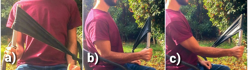 Fig. 5. a) Resistencia a la supinación. b) Neutro. c) Resistencia a la pronación.
