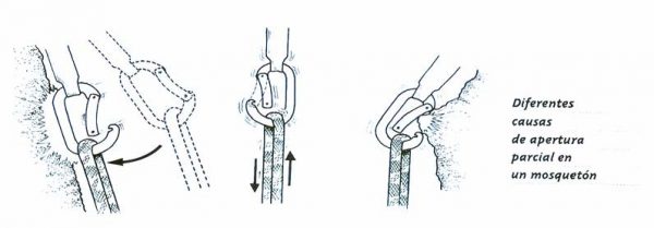 Los mosquetones pueden llegar a trabajar abiertos principalmente por 2 motivos: