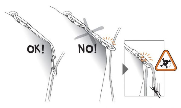 El principal problema de los mosquetones simples es que pueden llegar a trabajar abiertos reduciendo así su resistencia en una tercera parte.