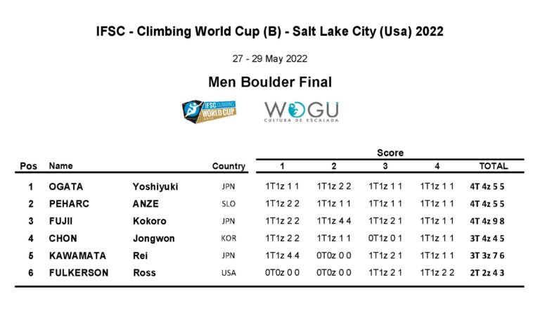 Luego de una disputada ronda clasificatoria, donde la cantidad de intentos sería clave para la disputa final, volveríamos a ver una ronda de copa del mundo teñida por los colores de Japón. Yoshiyuki Ogata, Kokoro Fujii y Rei Kawamata lideraban los bloques, pero Anze Peharc de Eslovenia lograría quedarse con el 2dp puesto, detrás de Ogata y delante de Fujii. La ronda no fue tan difícil, siendo definida por el número de intentos, y el podio decidido por los resultados de la semifinal.