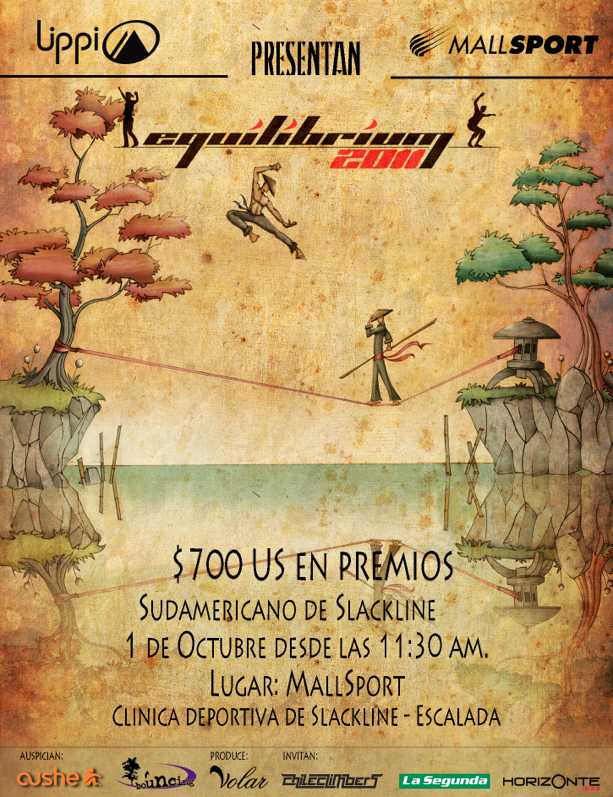 Con $700 US en premio a repartir!!! Equilibrium se perfila como el evento más grande de Slackline realizado hasta el momento en Sudamerica. (premio categoría Expertos)
