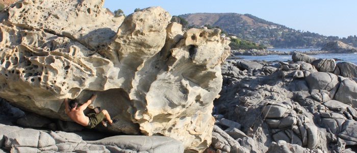 Para los que se van a la playa el fin de semana, y se quedan con ganas de escalar, les proponemos un sector con muy buenos bloques en Zapallar. El lugar es además, muy bonito y las formas de las rocas permiten una gran diversidad de problemas muy distintos unos de los otros. La roca, como suele darse en los sectores próximos al mar, puede ser más abrasiva.