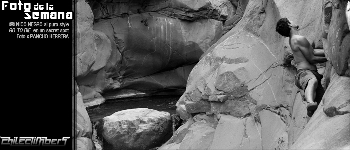 Pancho Herrera, conocido y excelente fotógrafo de deportes de montaña, se las ha pasado viajando para descubrir y retratar nuevos lugares para escalar a lo largo de Chile. De hecho, actualmente se encuentra navegando en un yate por el extremo sur de Chile, junto a su hermano, Claudio Vicuña y Seba Rosende para descubrir lugares inéditos y recónditos para escalar. Nico Negro, un buen partner de estos cabros, con su style Go To Die es motivado para cumplir este tipo de misión, ya que se freesolea lo que le ponen por delante. En la foto, intenta una posible ruta a vista, sin cuerdas ni colchonetas. La conclusión de la hazaña… este paradisíaco lugar -que todavía no quieren revelar- podría ser un futuro spot para la escalada.