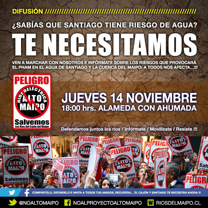 Llamado a participar: marcha en Alameda NO ALTO MAIPO