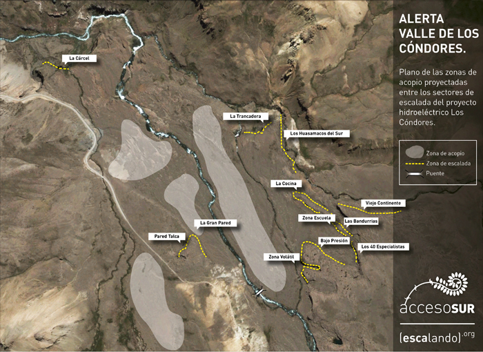 Como una pesadilla que se nos repite cada cierto tiempo, nuevamente vemos como uno de nuestros lugares de escalada se está viendo seriamente amenazado por problemas de acceso. En este caso se trata del Valle de Los Cóndores, situado en la cordillera de la séptima región, uno de los mejores sitios de escalada en Chile y Sudamérica, con cerca de 200 rutas equipadas de gran nivel y aún un enorme potencial por abrir. El Valle consta de dos grandes zonas, una en la ribera sur del río Maule y otra en la ribera norte de éste, en ambas existen sectores de escalada habilitados. A continuación expondremos la información que, al respecto, hemos recabado.