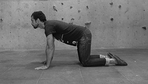 1. Parte de una posición neutral con cuatro apoyos sobre el suelo (ambas palmas y rodillas). Fíjate que tus muñecas estén justo por debajo de tus hombros y tus rodillas de tus caderas. Siempre evita tensar tu cuello. Que tu espalda esté lo más plana posible.