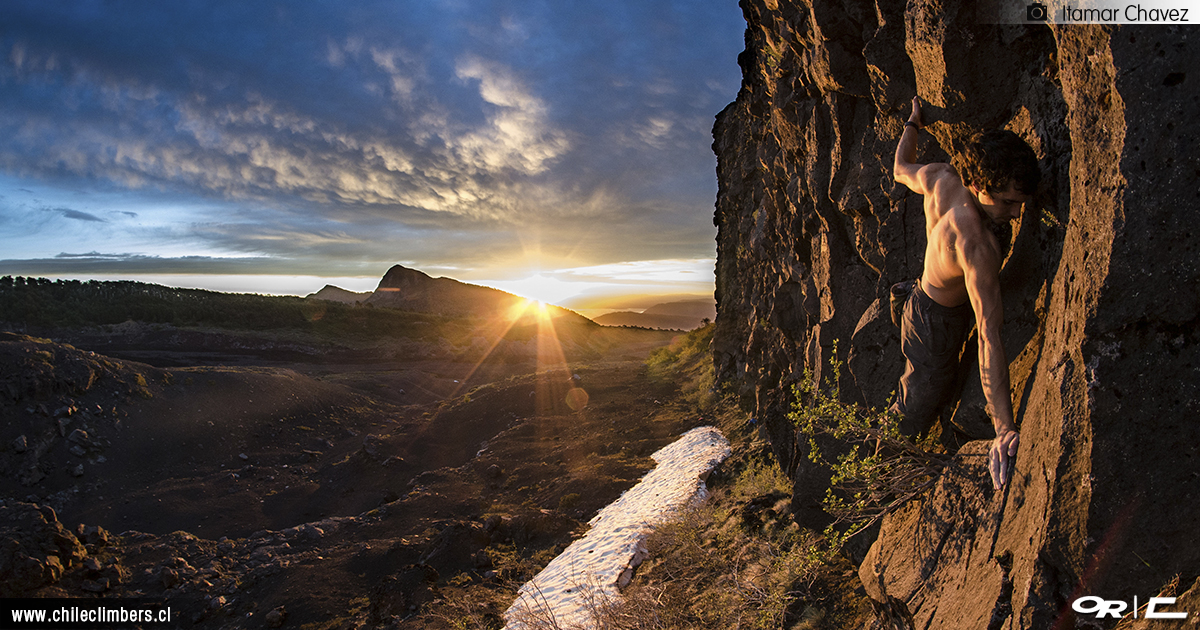 Los alrededores de Pucón y Villarica se han transformado en un excelente destino para la escalada, ya que han aparecido nuevos sectores y se está equipando mucho por esos lados, gracias a que hay cada vez más escaladores locales en la zona. Como este sector llamado «Pino Huacho», ubicado entre Villarica y Pucón. En la foto aparaece Fernando Bañares, un escalador de Temuco. Foto por Itamar Chavez.