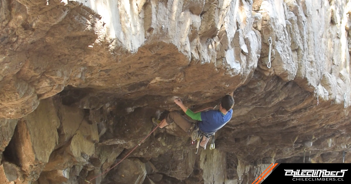 (Tomás Ravanal atleta Adidas probando darle el primer encadene a Bosquecentrismo 8B+?? al no tener primeros ascensos se hace más difícil aún graduar las rutas.)