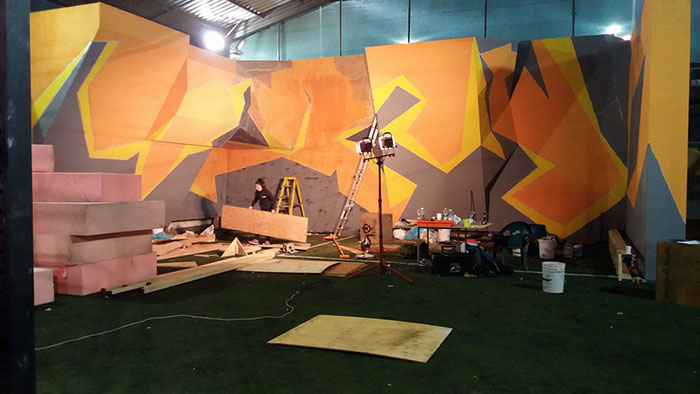 Llegó marzo y, hasta la fecha, no hemos parado de trabajar. El muro ya está casi casi, estamos tapizando las colchonetas para poder empezar a abrir los boulder del festival inaugural. Es un muro que está construido con mucho cariño, dedicación en las terminaciones y pensado para el disfrute del escalador.