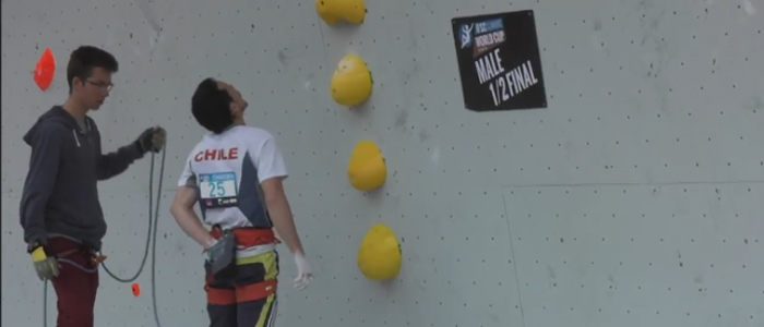 Hablamos un poco con él sobre sus sensaciones en la competencia y esto no dice: «en pocas palabras, me sentí super bien escalando; lástima que no me caí empopeyado, sino que cometí un error de lectura, el cual me llevó a tener que realizar un paso dinámico de bloque en una travesía hacia la izquierda, en vez de cambiar de mano e ir estático de hombro a la siguiente presa. Analizando bien la situación, puedo ver que el error específico fue no escuchar las sensaciones que percibimos a través de la mente lo que me llevó a precipitarme demasiado en un movimiento que pude haber resuelto con más calma, sensación y reorganización de la escalada. Lo bueno es que sé que puedo dar mucho más; sólo falta trabajar aspectos bien específicos para mejorar la escalada a vista y, obviamente, seguir mutando».