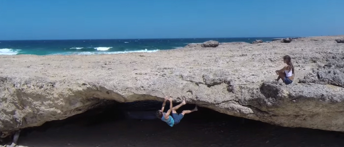 Ser uno de los mejores escaladores del mundo te da ciertos privilegios, como poder ir a escalar a recónditos y bellos parajes. En esta oportunidad, se fue a hacer boulder a la pequeña isla de Aruba, ubicada frente a las costas de Venezuela, donde además de bellas playas sorprende la calidad de sus bloques.