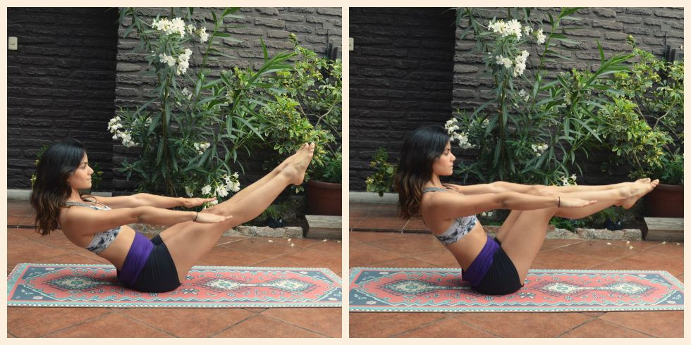 Esta posición podemos variarla cuando estemos agotados. Podemos bajar nuestro tronco y piernas a 10º, mantener ahí por algunas respiraciones y luego volver a subir, siempre manteniendo nuestra espalda lo más recta posible y nuestros hombros relajados.  Es fácil llegar a esta asana, pero muy difícil de mantener, por lo que se enfoca en la resistencia.