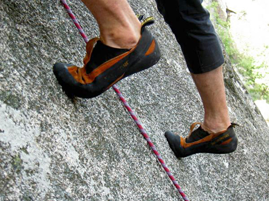 Muchos escaladores, suben por las paredes haciendo mucho ruido con los pies, seguramente es un hábito que se desarrolló durante un largo período de tiempo, así como un defecto en su técnica que les impedirá alcanzar su verdadero potencial. Su objetivo por supuesto, es aprender a subir con buena técnica de pié, incluso en los momentos más difíciles. Esto significa concentrarse en la colocación de cada pié, manteniendo su firmeza y estabilidad, siendo conscientes de cómo estamos pisando, procurando ejercer la mejor fuerza en el apoyo sintiendo con confianza como nos facilita el movimiento en ejecución.