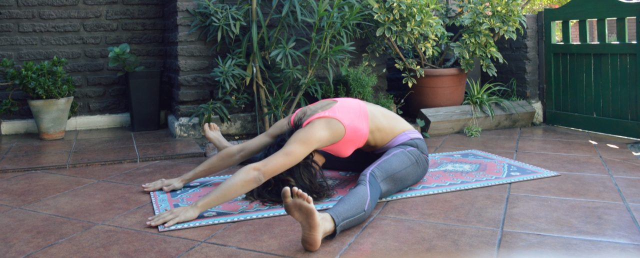 Liberamos la postura y nos sentamos en el mat con las piernas hacia adelante. Volvemos a centrarnos en nuestra respiración, controlándola para que sea estable. Exhalamos y llevamos nuestro tronco hacia adelante, tratando de tocar los dedos de los pies con nuestras manos. Inhalamos y subimos lentamente. Separamos nuestras piernas y, exhalando nuevamente, bajamos nuestro tronco y mantenemos la postura, relajando nuestros hombros y cuello. Con cada exhalación bajamos más nuestro tronco, sin forzar, caminando con los dedos de nuestras manos hacia adelante. Mantenemos por dos minutos.