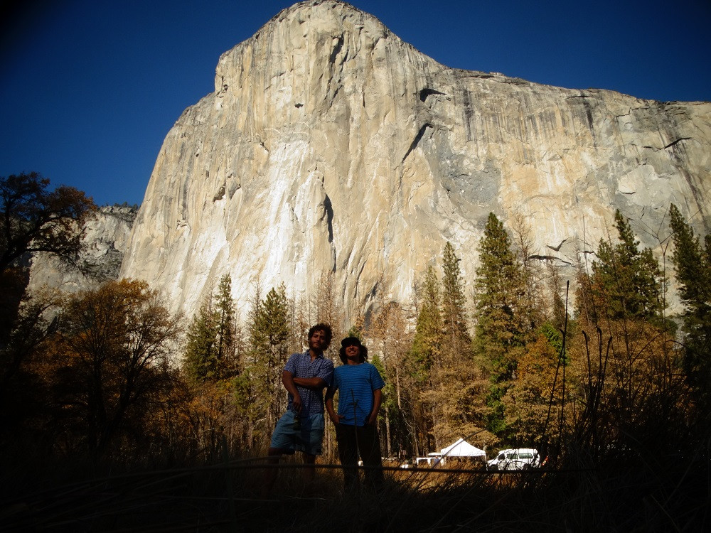 En fin, algo así como el siete de octubre me junté con mi compadre Diego Haggeman y fijamos rumbo hacia Yosemite National Park. Al llegar al parque nos dimos cuenta que el paisaje era más parecido al de un centro comercial que al del místico valle que nosotros esperábamos, estaba lleno de turistas y rangers poco amigables que generaban un ambiente un tanto hostil….. pero la verdad es que esto no importaba mucho debido a la calidad del granito, el cual sin duda es el mejor que yo he escalado.
