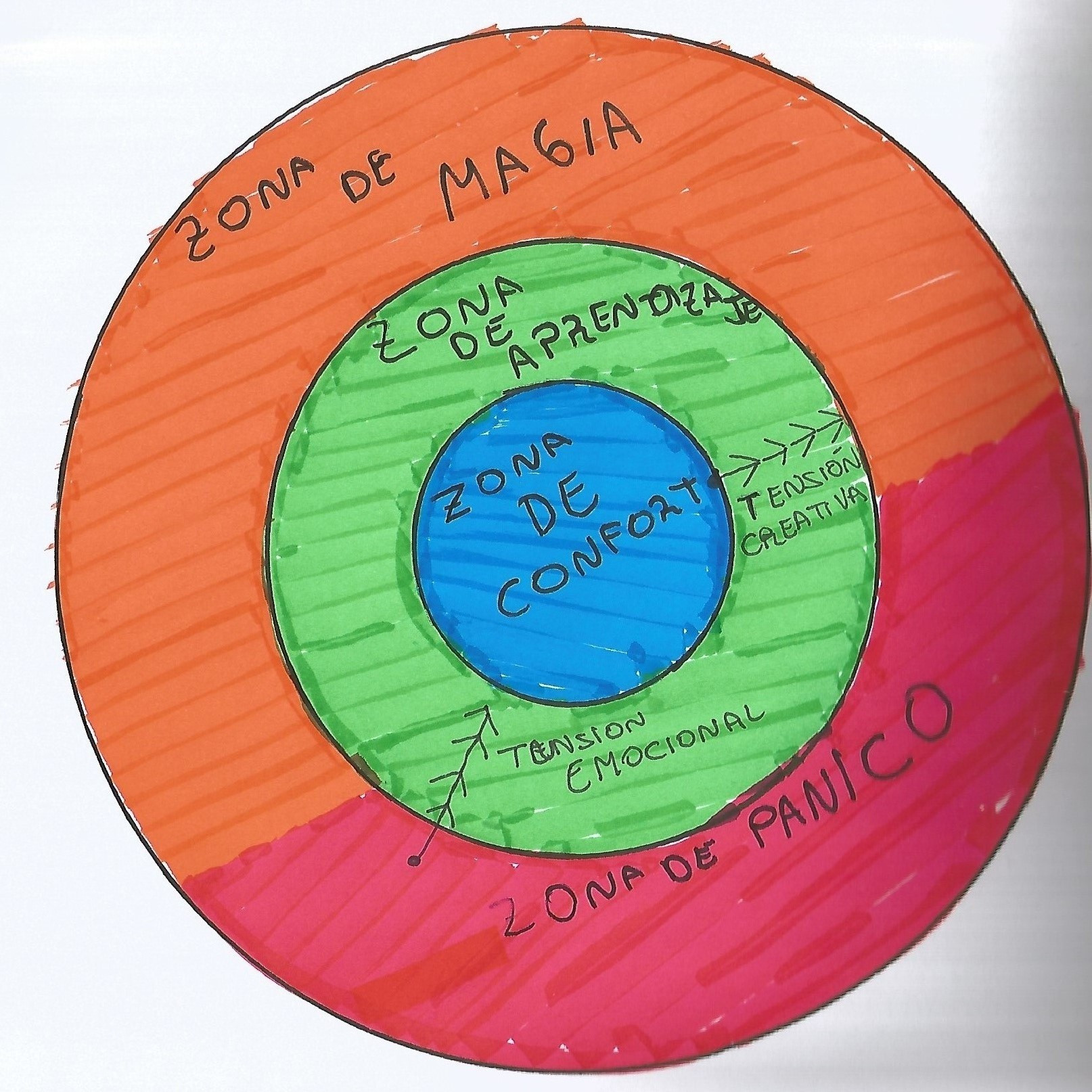 Aquella que viene luego de la zona de aprendizaje. Es la tercera zona de este dibujo, y es en la que muchos piensan al momento de intentar o ver algo nuevo: pánico. Un espacio mental en el que no queremos entrar. Todos tenemos nuestra zona de pánico personal, aquello que nos aterra: hablar en público, tener un trabajo de oficina, terminar un proceso y dar el salto a otra etapa, etc. Muchos se saltan la zona de aprendizaje, esta el confort y el pánico. Sin espacios intermedios.