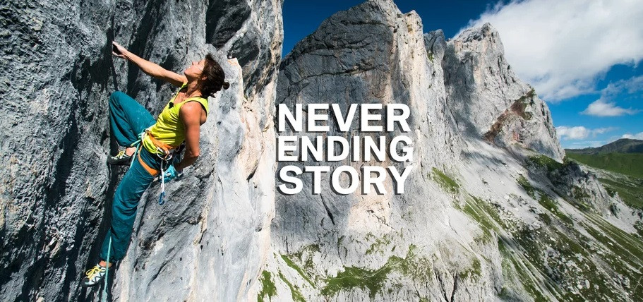 La ruta “Never Ending Story” fue establecida en 1991 por el austriaco, Beat Kammerlander, siendo una de las vías de pared más duras del mundo para esa época. Ahora, más de 25 años después, la ruta acaba de ver 2 increíbles repeticiones, realizadas por 2 de las mejores escaladoras del mundo en este estilo; estamos hablando de la austriaca, Barbara Zangerl y la Suiza, Nina Caprez, quienes se encuentran entre el pequeño grupo de escaladores que pueden transferir sus grandes habilidades de escalada deportiva directamente a las grandes paredes del planeta, realizando algunas de las ascensiones más significativas del momento para la escalada femenina.