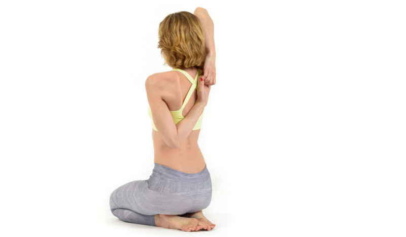 Elongas hombros, axilas, tríceps y pecho. Flexibilizas hombros, mejora la postura y la digestión.