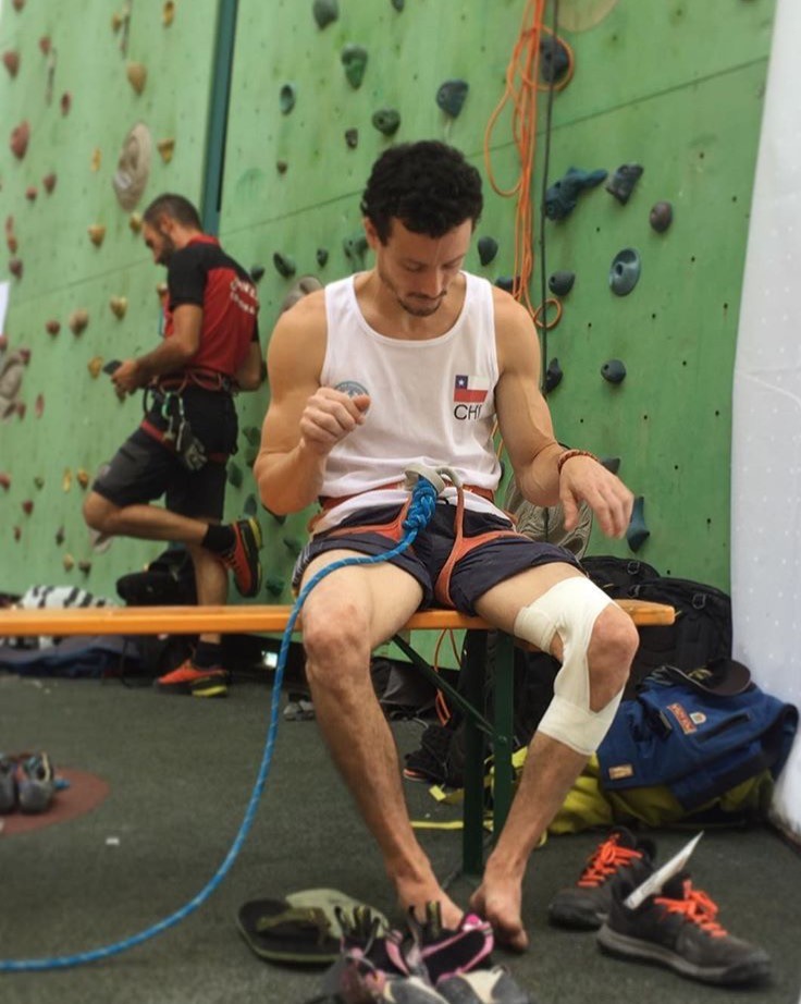 Personalmente creo que me encuentro dentro del grupo de fanáticos que ha intentado darlo todo para continuar disfrutando y evolucionando como escalador, llegando a tal punto que mi felicidad comenzó a depender de esta pasión, ya que si no podía escalar por alguna lesión, sentía que no me encontraba conmigo mismo, estando en un estado “INERTE”, sin el impulso ni la motivación de hacer otras cosas. Este patrón seguramente duró unos cuantos años antes de cambiar el “chip”. Pasé por una lesión en la muñeca (Edema Óseo) que me tuvo sin escalar más de 6 meses, una lesión en el dedo medio de la mano derecha (Esguince) que me tuvo sin escalar más de 4 meses, luego en 2015 una lesión en la rodilla (Condromalacia) que me tuvo sin poder escalar por más de 6 meses. Como pueden ver soy bastante terco para algunas cosas … En 2016 y gracias a mi auspiciador Adidas Terrex, fue mi mejor año competitivo y todo iba para arriba, sintiéndome mejor de todo el cuerpo, hasta que llegó la peor lesión que he tenido, un edema óseo, acompañado de tenosinovitis, capsulitis, principio de artrosis y ya no recuerdo qué más. En conclusión, mucha inflamación en el hueso y los tejidos blandos a causa de una zapatilla muy apretada durante bastantes años entrenando, y sobretodo por un exceso de sobrecarga en el dedo, escalando en paredes muy “plaqueras” durante un periodo de tiempo bastante largo. Esta lesión me dejó sin poder escalar a mi 100% por más de un año y fue realmente la gota que rebalsó el vaso y me obligó a reflexionar sobre la felicidad, los apegos y los miedos, entre otras cosas y gracias a eso, creo que desde allí he comenzado a retornar a mi esencia, al disfrutar de los pegues, de la gente, de los lugares, del viento, del silencio, etc.. Y dejar un poco de lado el fanatismo intrínseco que tenía por escalar cada vez más y mejor.