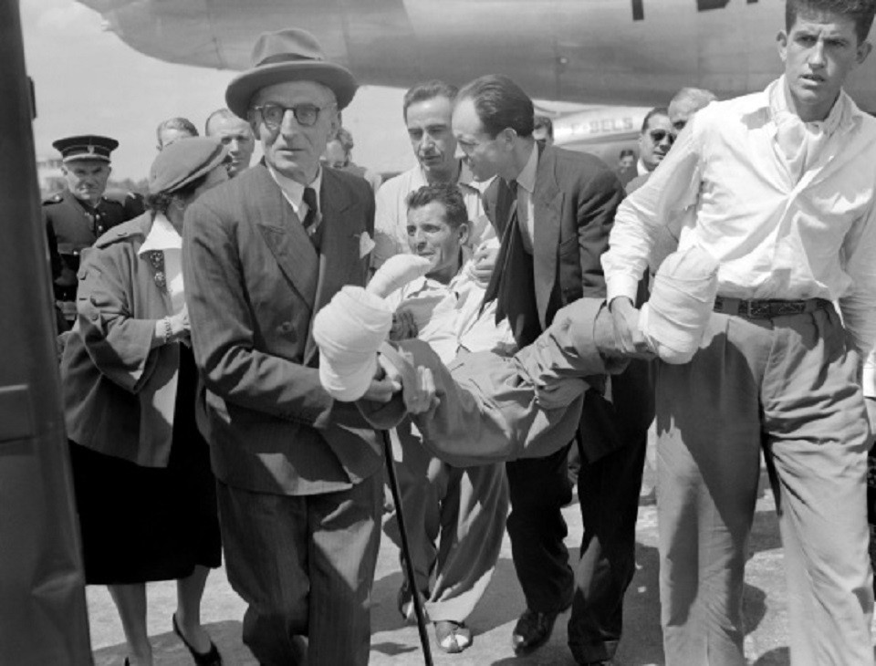 El frances Herzog ayudado a su vuelta del Annapurna, 1950