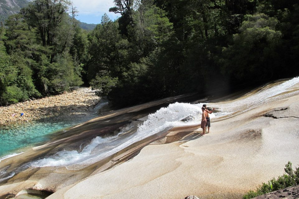 Los toboganes de piedra: un clásico de Cochamó. Como todos los cauces de agua del sector hay que mantenerlos sin agentes contaminantes como shampoo, Jabón, etc