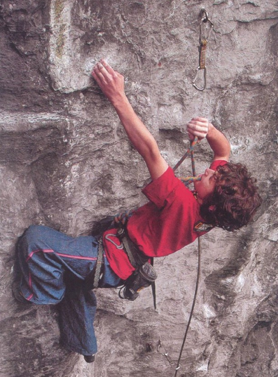 Adam Ondra en sus inicios en la escalada, cuando aún se podía escalar con la magnesera puesta .