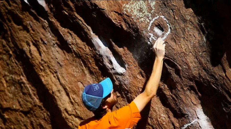 Muchos estamos habituados a marcar «los pies» con un puntito de magnesio para que no se nos olviden, o marcar con una raya la posición donde esta el bidedo escondido o el lugar exacto donde esta la mejor toma del agarre. De hecho grandes estrellas de la escalada lo hacen, por ejemplo, en Dawn Wall Kevin Jorgueson marca con una cruz de magnesio, el punto exacto donde está una «ñapa» minúscula en un crux.