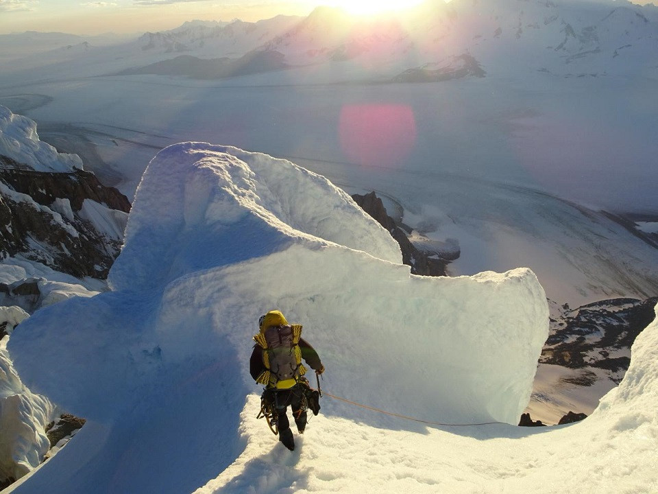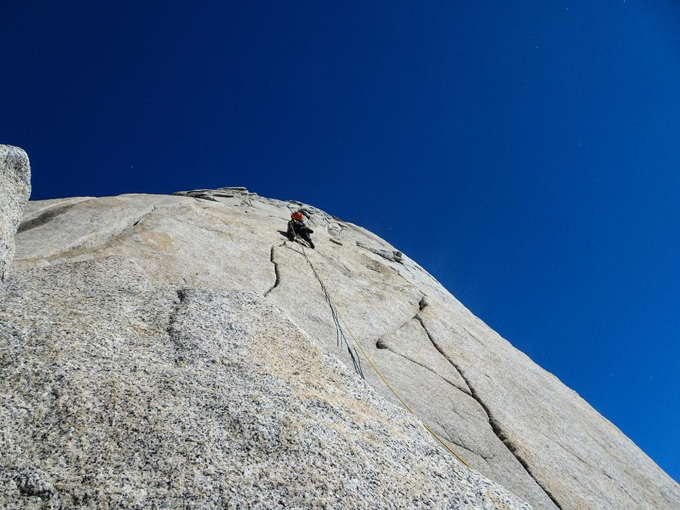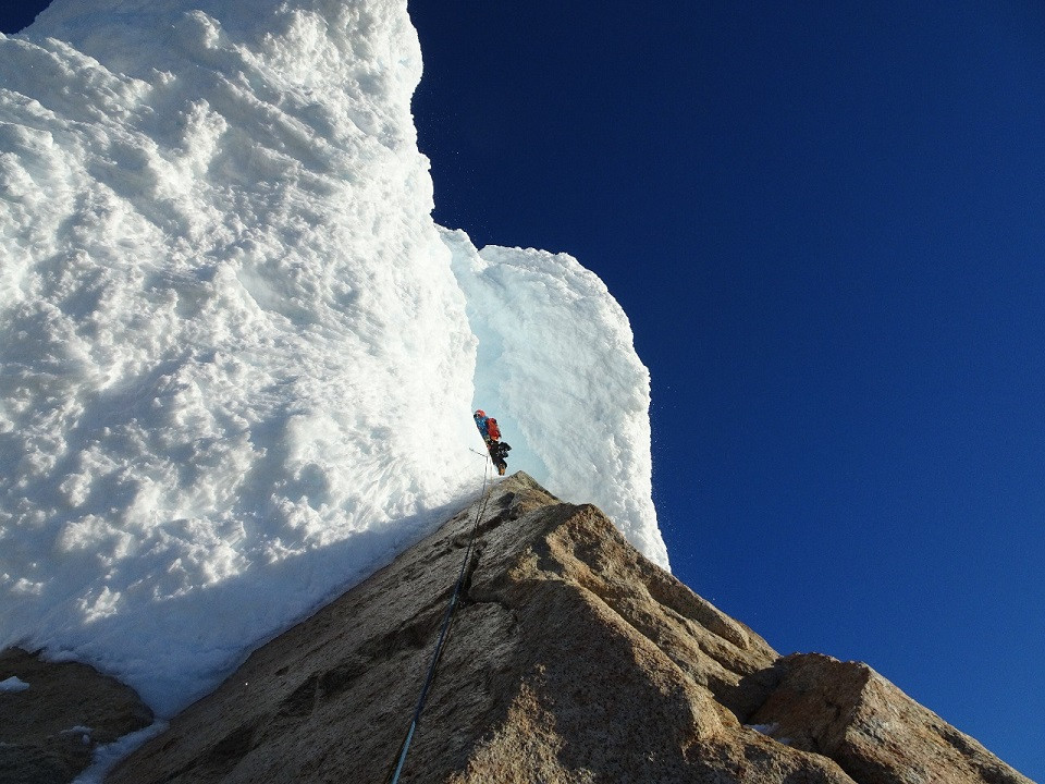 Pasando del granito a la nieve patagonica con un día espectacular que los acompañaba