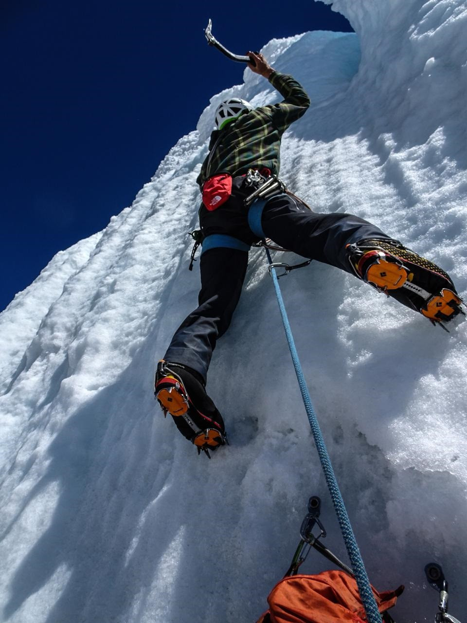 Sebastian Rojas metiendo piolet en el ultimo largo de la aguja Standhart