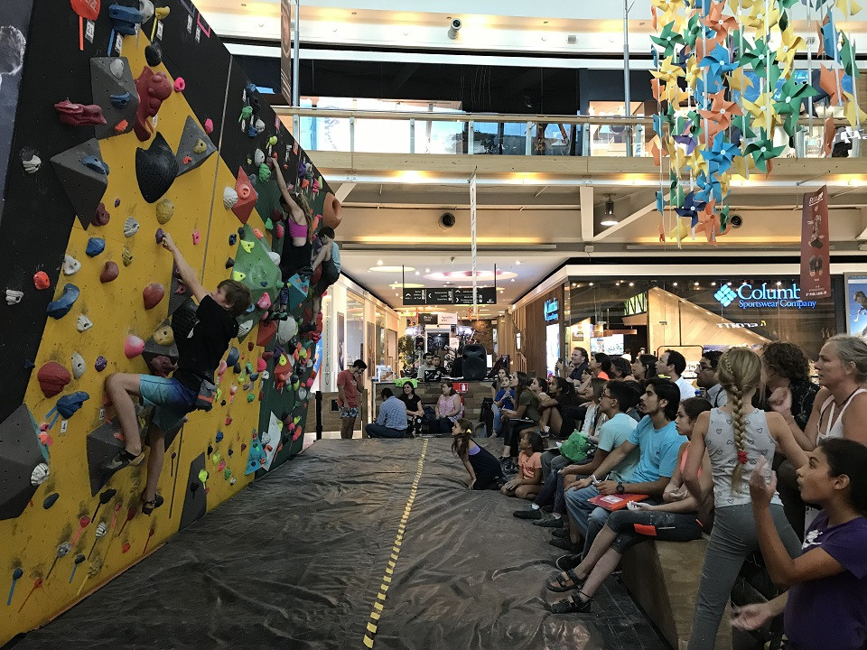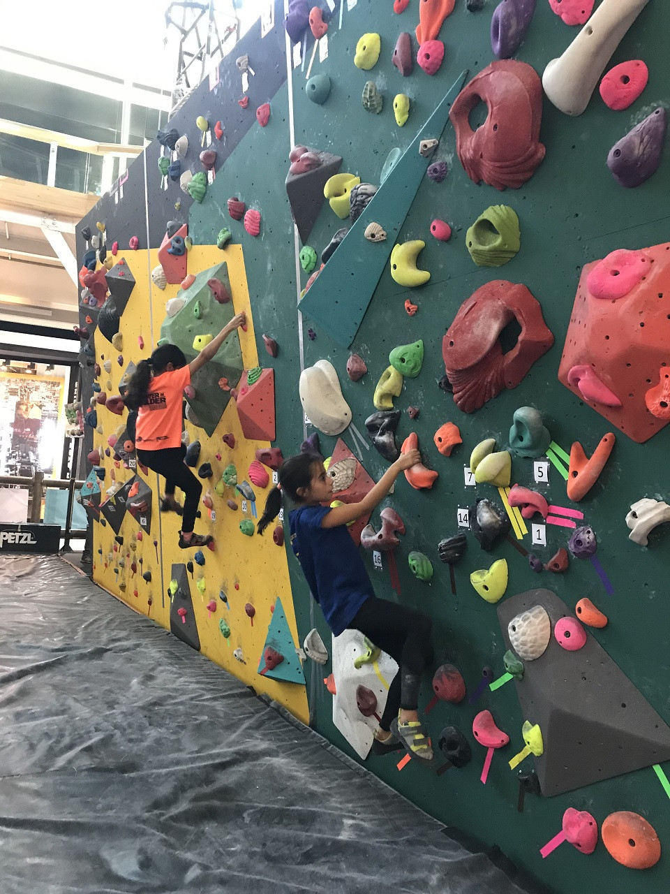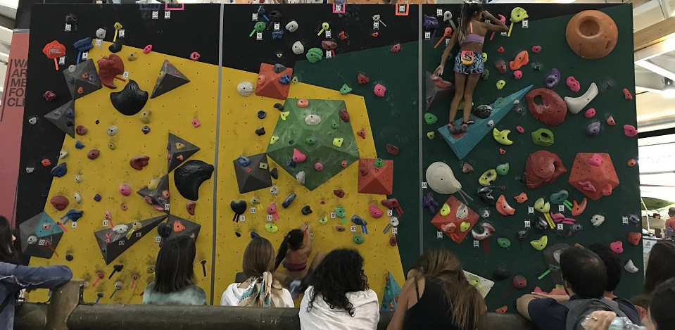 Los chicos dándolo todo en el muro mientras recibían el aliento de sus papás desde la galería.