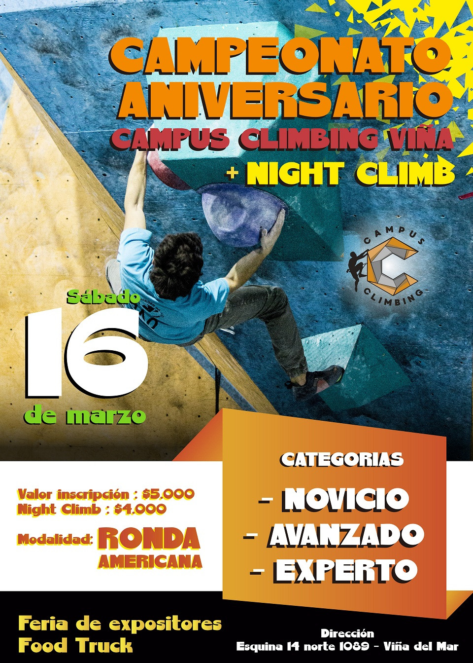 El objetivo del campeonato es celebrar el aniversario de Campus Climbing Viña