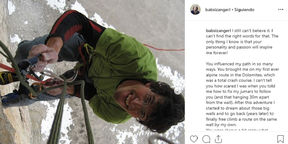 La destacada escaladora tirolesa Barbara Zangerl dedicaba calidas palabras para su compañero con quien compartío cuerda en varias ocasiones