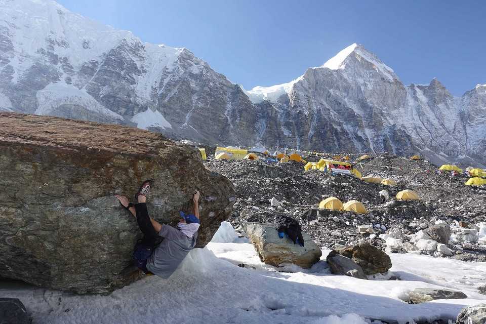 Todavía no estamos seguros de cuál será la primera montaña que subiremos. Al parecer todas las indicaciones nos muestran que será el Everest primero pero la verdad es que en el campo 4 será la decisión definitiva, esto dependiendo de las condiciones de las dos rutas. Estamos muy bien física y mentalmente, ahora aprovechando los días en el campo base para buscar nuevos bloques de boulder para mantenerse entrenando. Estamos con muchas ganas de empezar el ataque pronto!