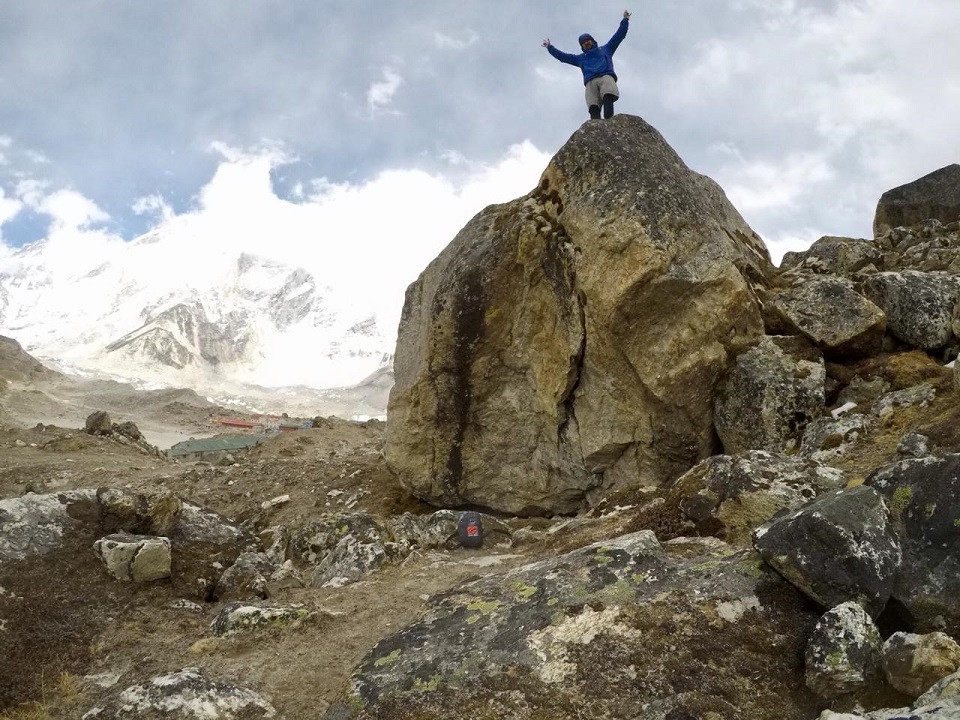 Ha sido una semana de espera: El 1 de Mayo, el equipo bajó del campamento base a Gorashep, el último pueblo de montaña antes del campo base, esto para descansar y estar más cómodos mientras pasaba la tormenta. Ahí pasamos 5 días, hemos hecho algunos trekkings en la zona, varios entrenamientos, incluyendo la cumbre del Kala Pather 5590 msnm. El 5 de mayo, encontré varios boulders por la zona algunos fáciles y otros muy difíciles, aparte de mantenerse entrenando intervalos algunos días. Todo esto mientras pacientemente esperábamos que la Meteo mejorara.