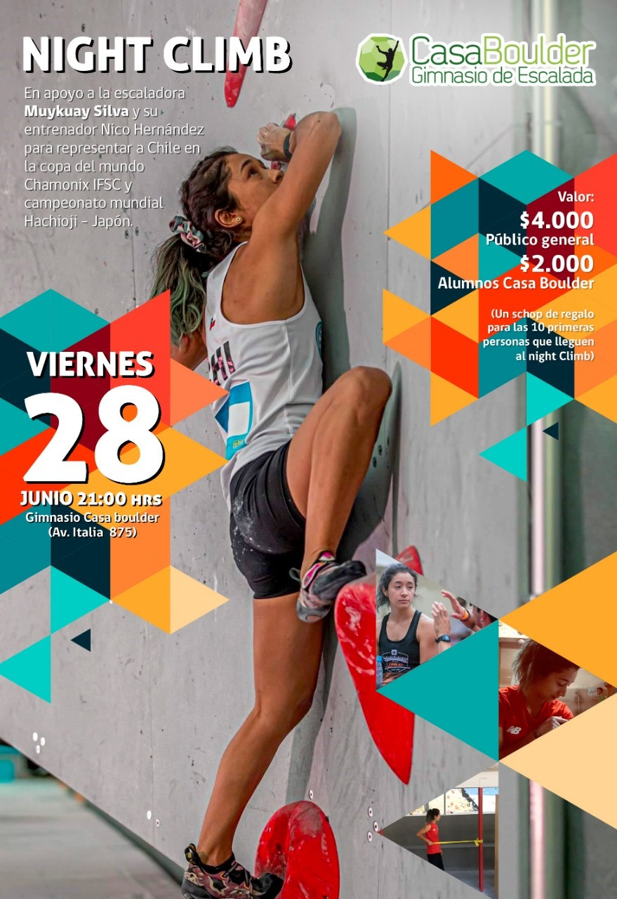 Este Viernes 28 de junio se realizará un evento a beneficio de la escaladora profesional Muykuay Silva y su entrenador Nicolás Hernandez, en búsqueda de obtener recursos para la participación de la deportista en 2 copas del mundo en Francia y el campeonato mundial en Japón en el mes de agosto.