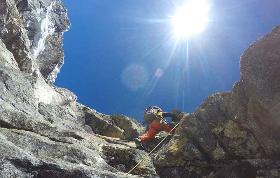 En la segunda jornada pagaron el cansancio del día anterior y la mala noche. ”El cuerpo no respondía con la energía y la vitalidad que nos habría gustado… Además había que sumarle la altura. Estábamos escalando todo el rato por encima de los 5.000 metros, con lo que los movimientos explosivos de la escalada se hacían muy penosos” rememora Eneko. A pesar de todo, siguen navegando con veteranía por ese jeroglífico enorme, descifrando cada pieza, que poco a poco, los va dejando más cerca de la cumbre, hasta que a las 15:30 de la tarde alzan con alegría los brazos en señal de victoria en lo más alto de la montaña.