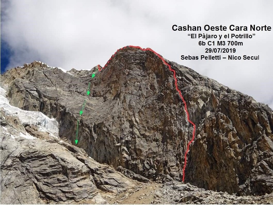 El pasado 29 de julio, luego de que los hermanos Pou abrieran una ruta en el poco explorado Cashan Oeste (5.700 msnm aprox) en la quebrada de Rajucolta en las cercanías de Huaraz, motivados por las hermosas imágenes que les habrían mostrado, Sebastián Pelleti y Nicolás Secul, futuros aspirantes a guía UIAGM Bolivia, decididos a tener una aventura épica partieron al “Punta Tijeras” para abrir una nueva línea.