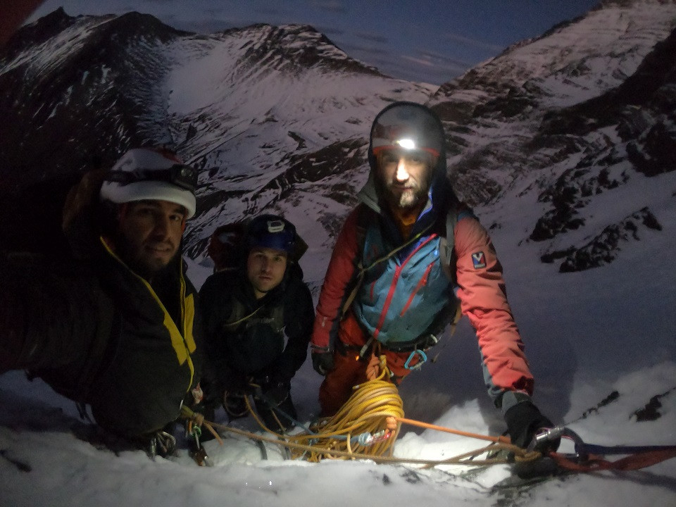 El reloj marca cinco horas de aproximación hasta el lugar donde montamos nuestro campo base, este lugar nos permite apreciar la hermosa cara montañosa donde nunca llega el sol, equella fría cara nos invita a soñar con una línea perfecta de nieve, hielo y roca. La temperatura disminuye, la claridad del día se transforma en un manto negro, y después de conversar los detalles y cenar algo caliente, pronto estamos bivaqueando en nuestros sacos de dormir.