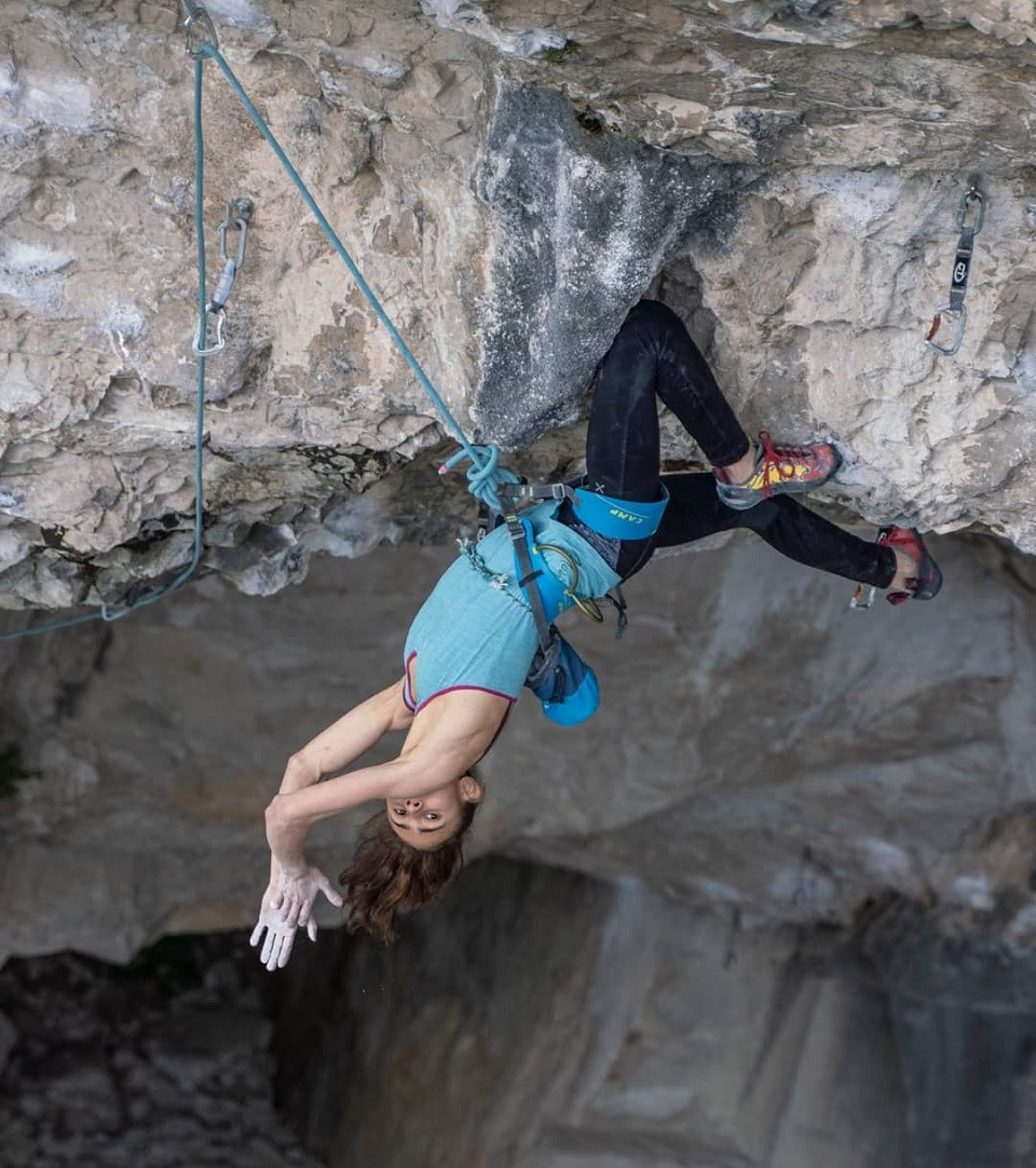 La menuda y mega power escaladora Italiana Laura Rogora el 25 de Julio pasado sorprendía al mundo al lograr ser la segunda escaladora a nivel planetario en encadenar una vía de grado 9b, luego de que Angy Eiter hiciera historia marcando el punto rojo a “la Planta de Shiva” el 2017.
