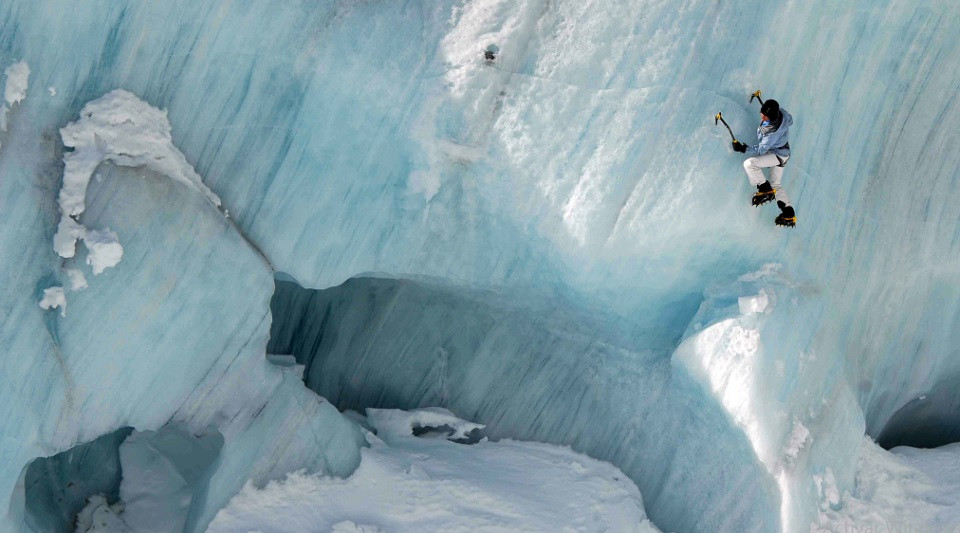 Freesoleando en hielo, modalidad que sorprendentemente no destacaba al momento de subir en el Egger lo que la llevó a buscar las laderas más escarpadas de roca en su ascenso.Foto: http://catherinedestivelle.com/