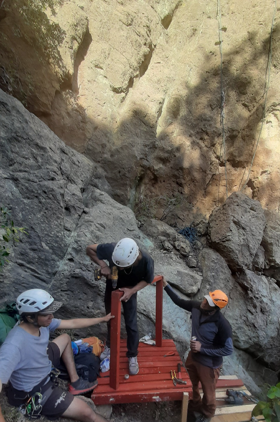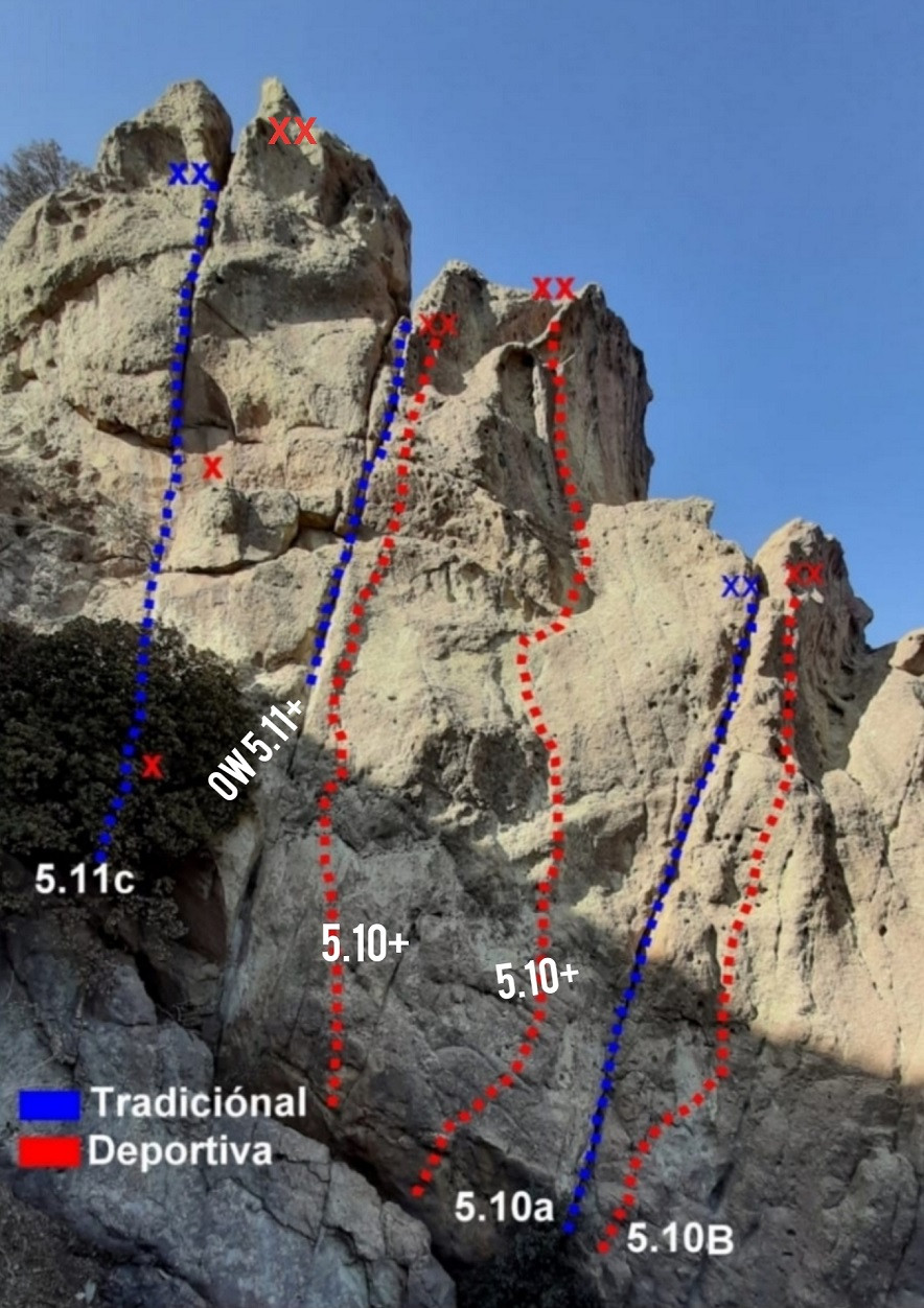 -Las rutas de trad con un rack simple de .3 al 3 se equipan, si no quieren cargar el rack, estas se pueden equipar para el top rope desde las rutas deportivas (que tienen 14 cintas aprox).
