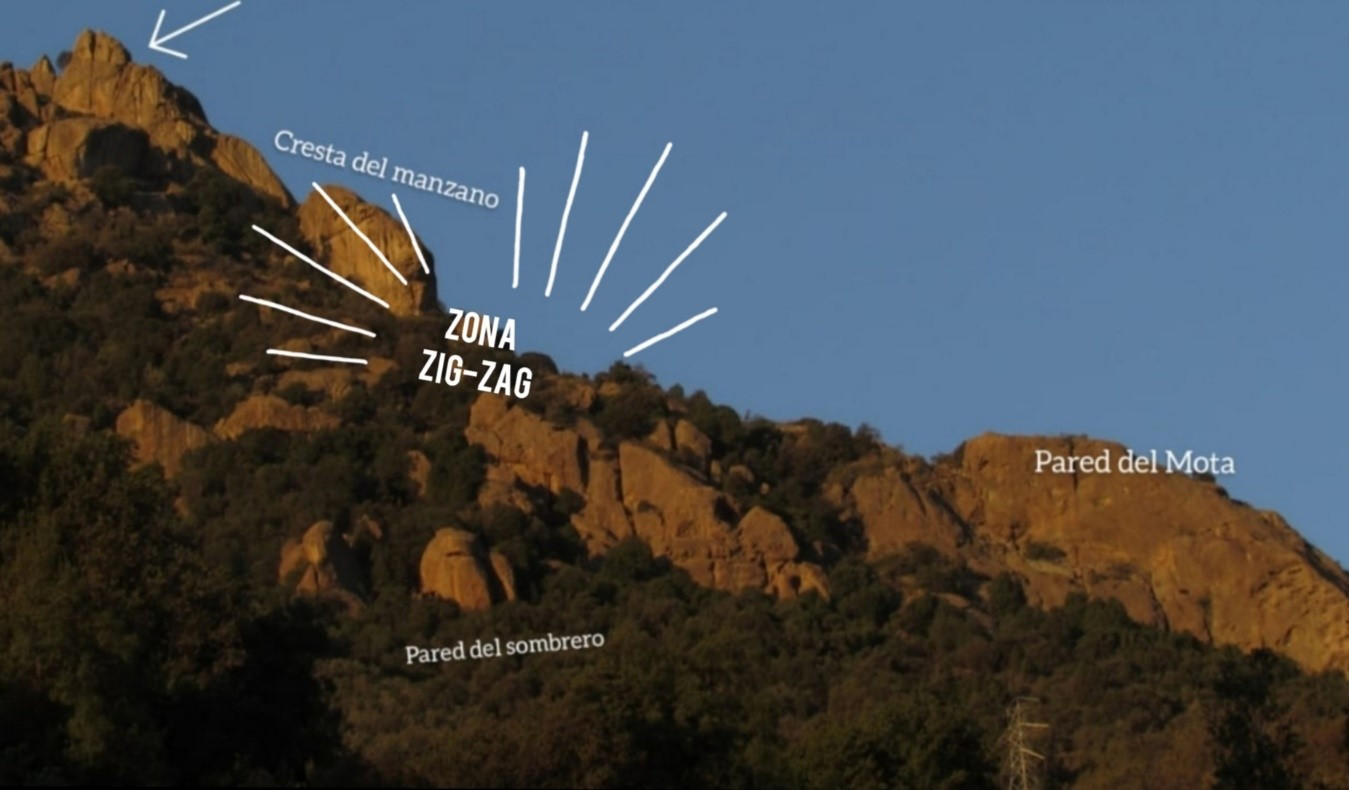 El sector se encuentra sobre la antigua cresta del manzano, a 40 minutos de la pared de Mota. La zona de aproximación a la cresta no tiene huella establecida, por eso los chicos realizaron un zig-zag que disminuye el impacto que podrían generar los caminantes en esa aproximación.