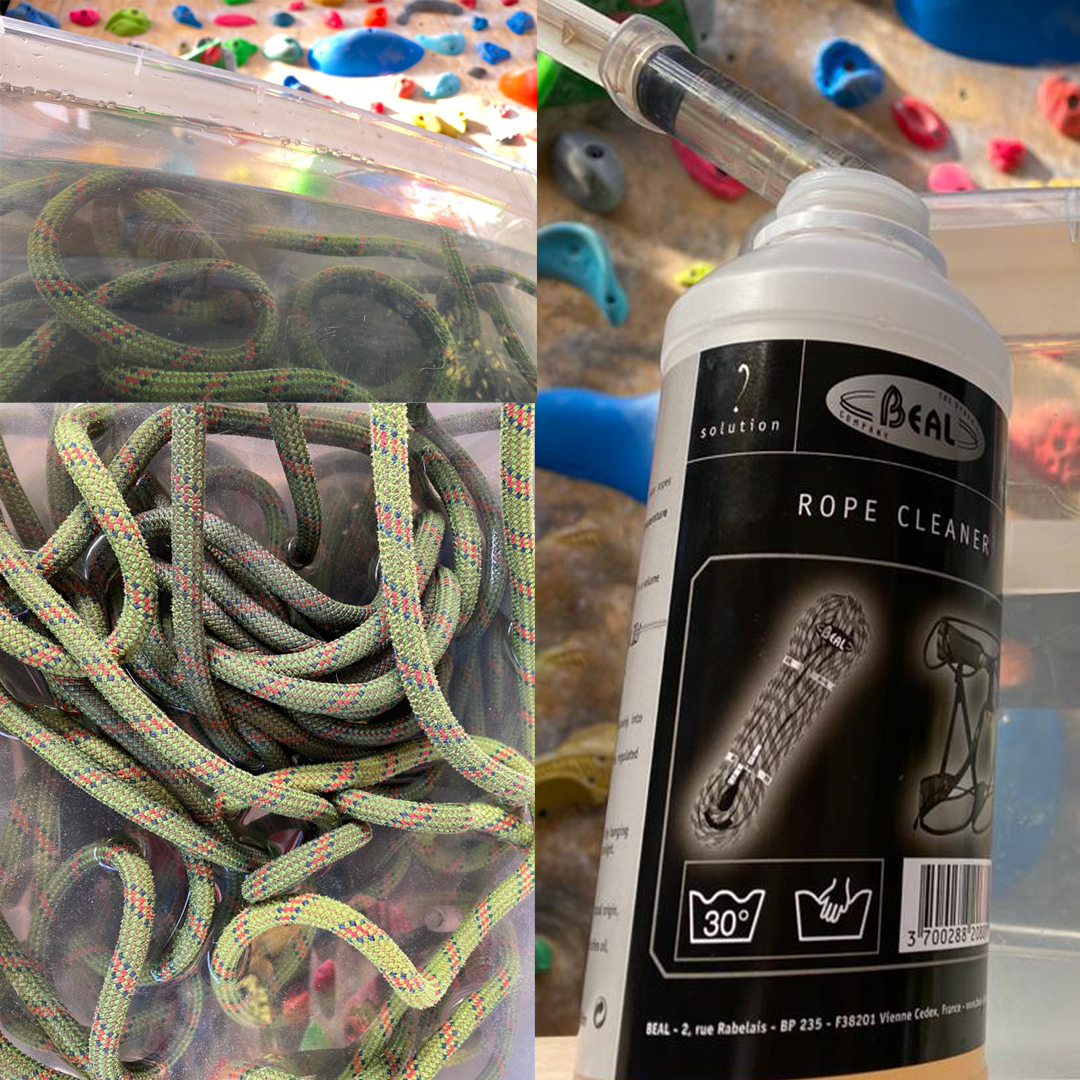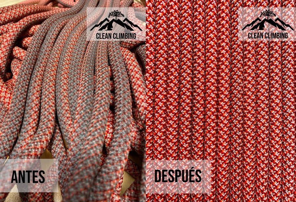 El servicio comienza con un análisis detallado del producto en relación a su cuidado, tiempo de uso y desgaste. Posteriormente se realiza un proceso de limpieza en seco y húmedo para extraer todos los elementos extraños de la cuerda al ser utilizada en rocódromos y/o sectores de escalada en la naturaleza.