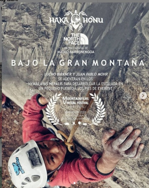 @hakahonu presenta el documental Bajo la Gran Montaña, realizado por Lucho Birkner, Mateo Barrenengoa y Juan Pablo Mohr, en el pequeño pueblo de Monjo en Nepal.  El proyecto busca ‘’involucrarnos con la comunidad de jóvenes, donde nos gustaría construir un Boulder artificial en alguna escuela local y abrir un nuevo sector de escalada deportiva en roca cerca del lugar. Así aportar nuestro grano de arena a personas que viven y dan la vida por el montañismo’’.  (Jp Mohr).