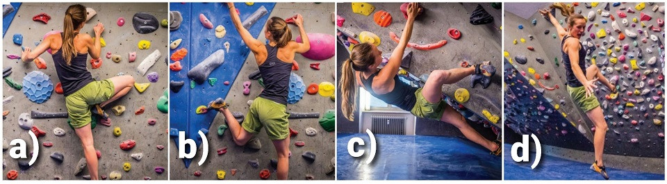 Los mecanismos principales que se han descrito son cuatro (Lutter et al., 2020): paso alto o “high step”, lolot o “drop knee”, taloneo o “heel hook” (que son movimientos propios de la disciplina), y la última serían las caídas (fig. 4). Los primeros dos ocurren más en escalada con cuerda, mientras que las otras en boulder.